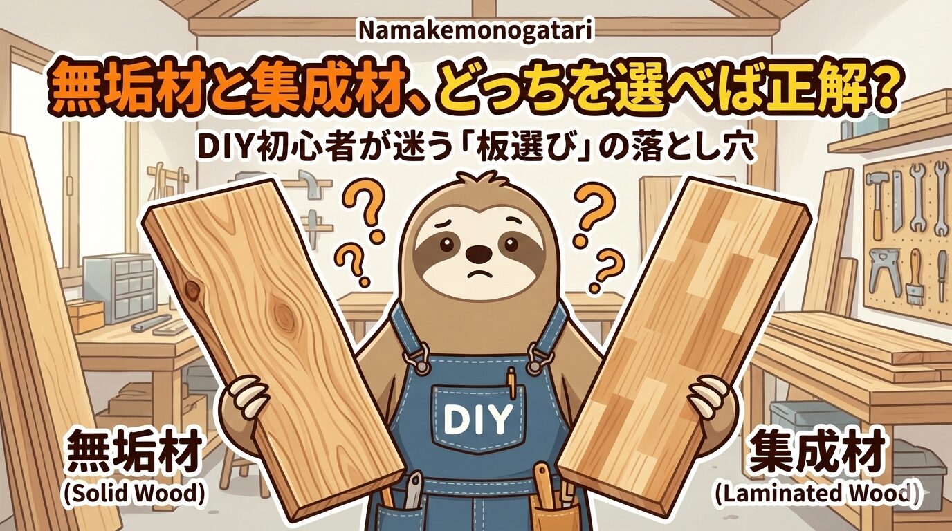 この記事は、「見た目で選んで買ってみたけど、後で反り返ってガタガタになっちゃった!」というDIY初心者の失敗を、材料の特長を正しく理解することで解決するための記事です。